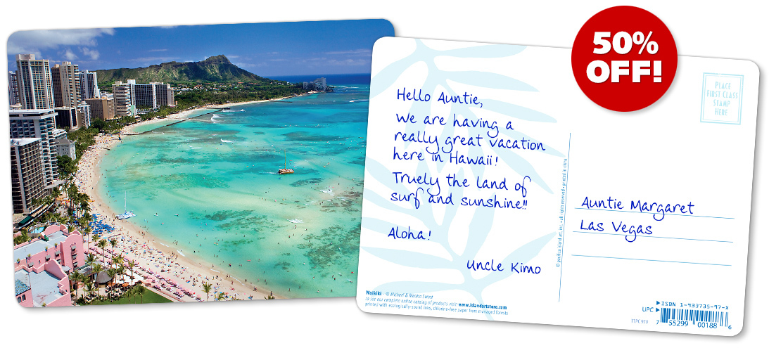 Our newest line of collectible 5" x 7" Postcards features a selection of images by acclaimed photographers Monica & Michael Sweet, Randy Jay Braun and Erik Aeder showing Hawaii's magnificent landscapes and marine life. All of our Thick Postcards have Matte Laminate with UV High Gloss Overlay and Unique Die Cut Rounded Corners.