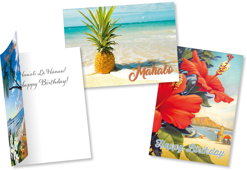 $4.00HAPPY BIRTHDAY CARD Inside greeting: Hau'oli La Hanau Happy Birthday! Artwork by Steve Sundram Greeting Card Size: 5 x 7 inches Quantity Pricing for Greeting Cards (any style or combination of Everyday Blank, Special Occasion or Holiday Cards)Quantity1...$4.00 -