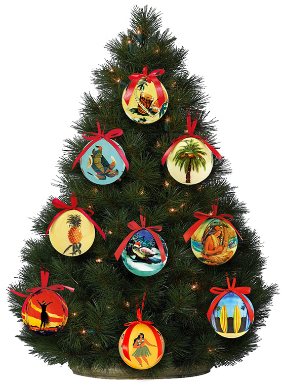 Add Aloha to any holiday decor with these shatterproof ornaments from Pacifica Island Art. Each ornament is individually packed in it's own box and features a red ribbon loop on top for easy hanging. Share a bit of Hawai'i by sending to friends and family for a Christmas filled with Aloha.