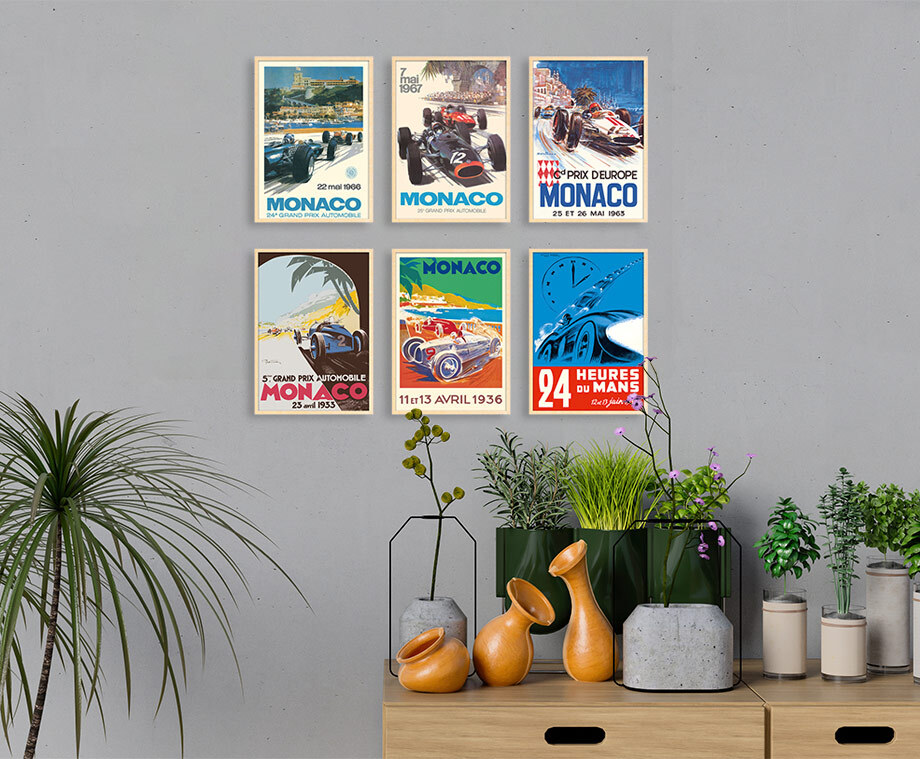 Vintage Car Racing Poster Prints - Set of 6 Unframed 5"x7" Prints