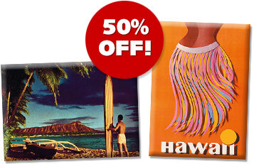 We offer a variety of Badge Magnets featuring a selection from our bestselling Hawaiian Art images.