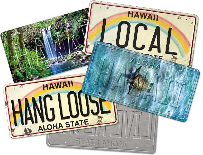 Enjoy a taste of Aloha with these vintage-style License Plates. They are made of embossed aluminum and measure 6in x 12in. Packaged in a resealable polybag they are the ideal gift for any occasion and they will perfectly accent any kitchen, home, bar, pub, game room, office or garage.